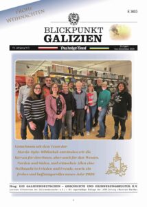 Unser Mitteilungsblatt “Blickpunkt Galizien – Das heilige Band” erscheint sechs Mal im Jahr. Außerdem finden Sie hier eine Liste unserer umfangreichen Literatur mit unterschiedlichen Themen.